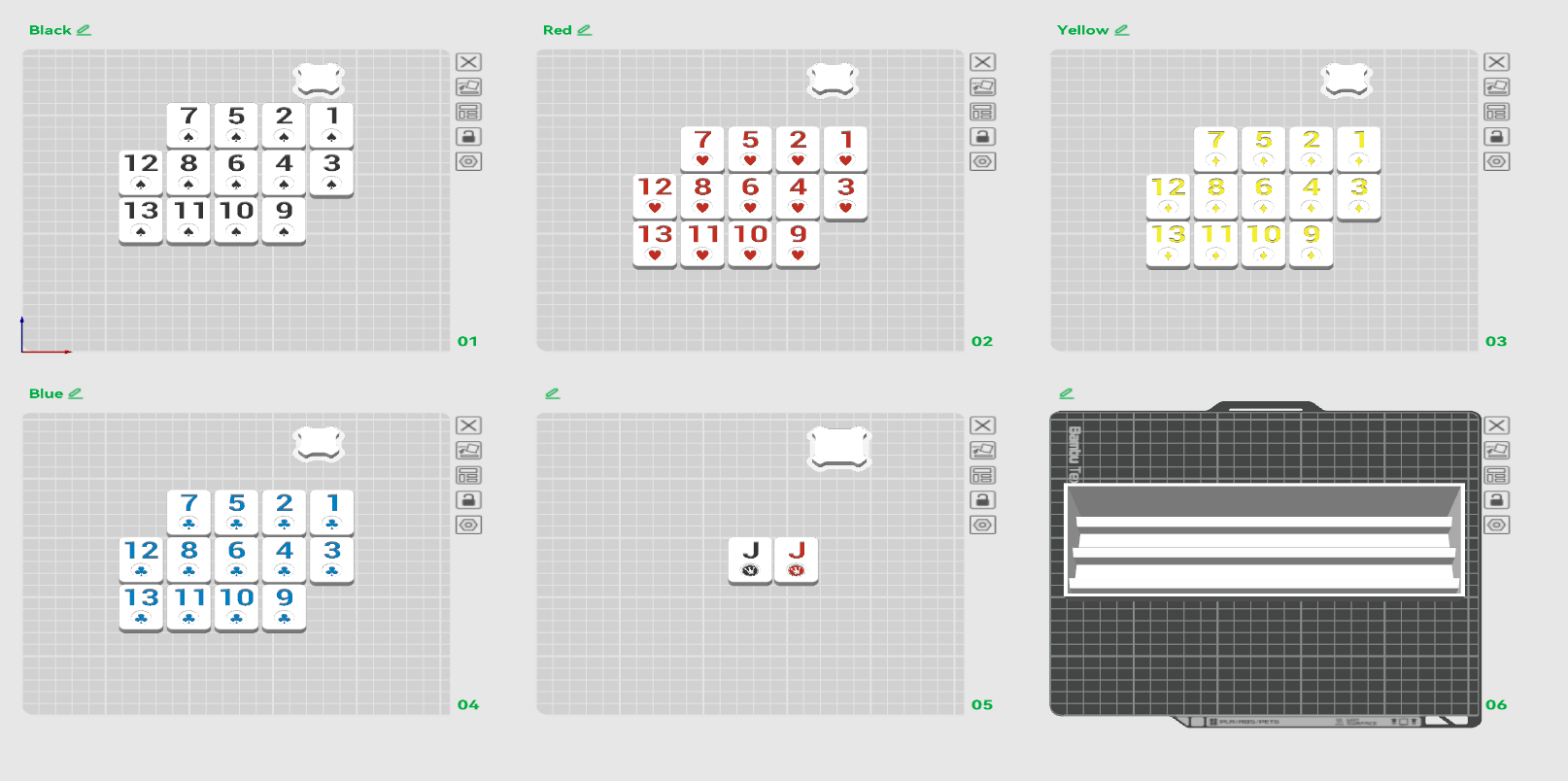 Printing tiles and shelves for a Rummikub Game or Rummy game.