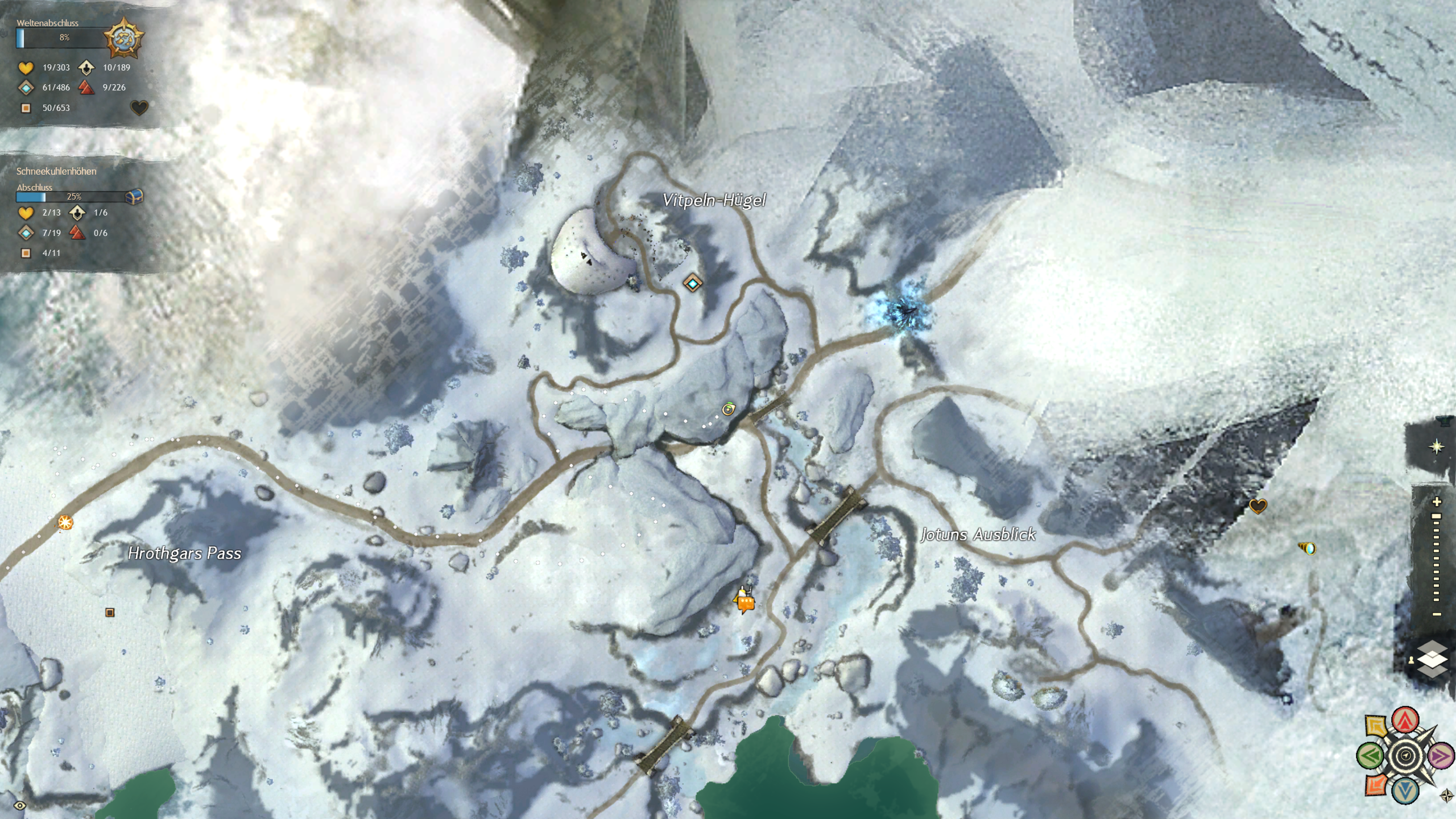 Zu finden zwischen den Vitpeln-Hugeln und Jotuns Ausblick auf einer Anhöhe in den Schneekuhlenhoehlen.